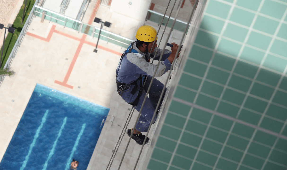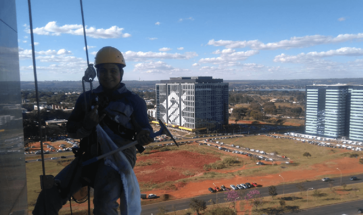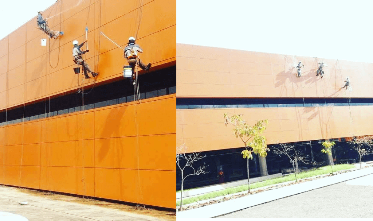 Nossa equipe é composta por profissionais experientes e altamente qualificados em alpinismo industrial e limpeza de fachadas prediais. Eles são treinados para realizar trabalhos em altura com segurança e eficiência.