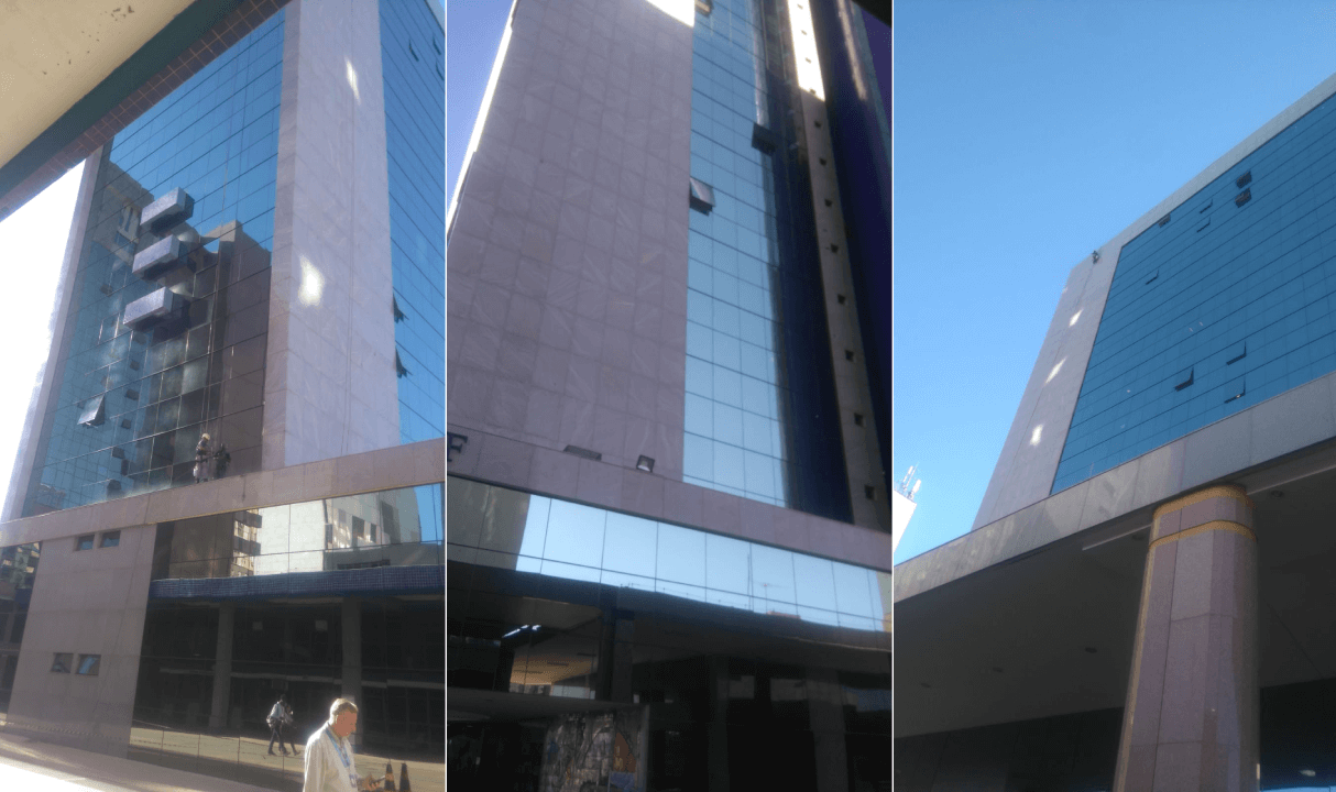 Consiste na remoção de vedação antiga não funcional e aplicação de uma nova e aplicação de silicone compatível com o local. Feito por meio de descida por rapel industrial ou balancin mecanizado